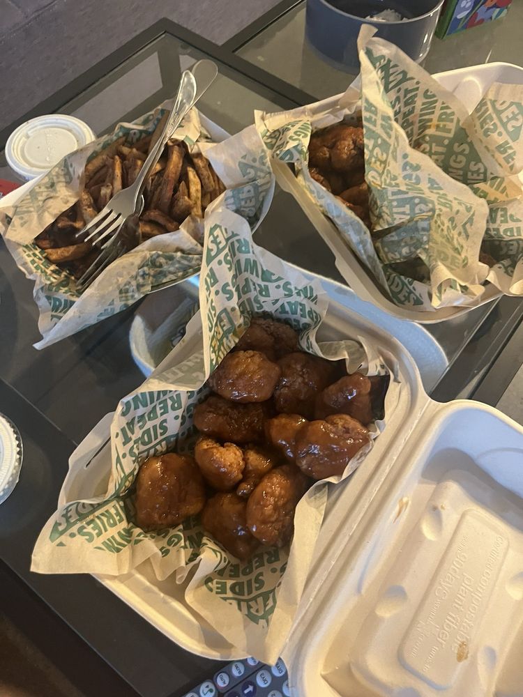 Comes with 20 Boneless Wings in your choice of 4 flavors, with a large fry and 2 dips. (Feeds 2-3)